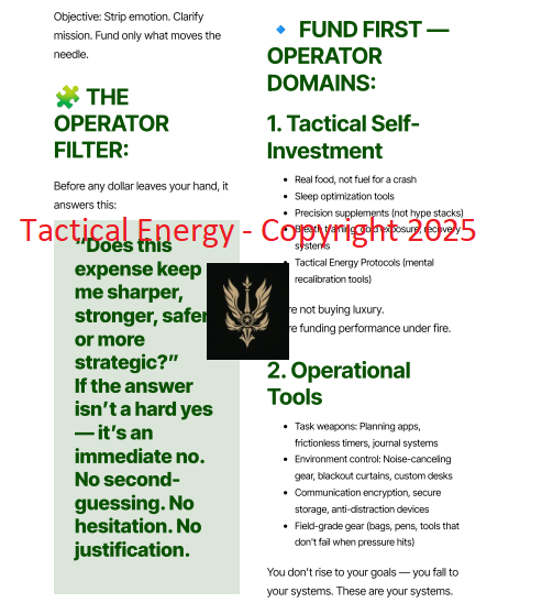Destroy emotional spending. Fund what makes you sharper, stronger, safer, and more strategic. Cut everything else.